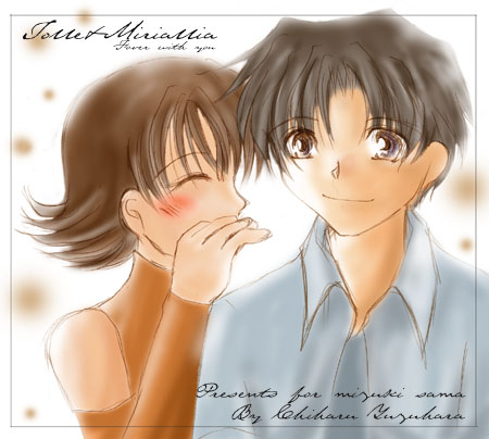 きゃーv頂いちゃいました!!相互リンク記念にっvv かわいい〜vv素敵ですっ!!ちはるちゃんっ!!(笑) 幸せそうなトールとミリィを拝めて私は幸せであります。 こんな幸せな二人は二度と見れないと思うと切ないです。 せめてミリィが幸せになってくれると良いなと思っています。