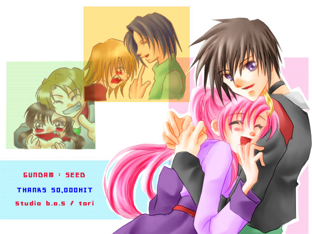 50000hit達成した「studio b.o.s」のとりさんのイラストを強奪(え?) キララクめちゃくちゃかわいーvvその他キラとカガリの誕生日記念も素敵ですv しかもラクス新衣装vマリューさんもかわいいし。アスカガの戯れも好きですねv